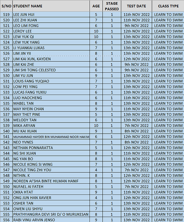 Congratulations, the following students have passed the swimming test conducted from Nov - Dec 2022 successfully.